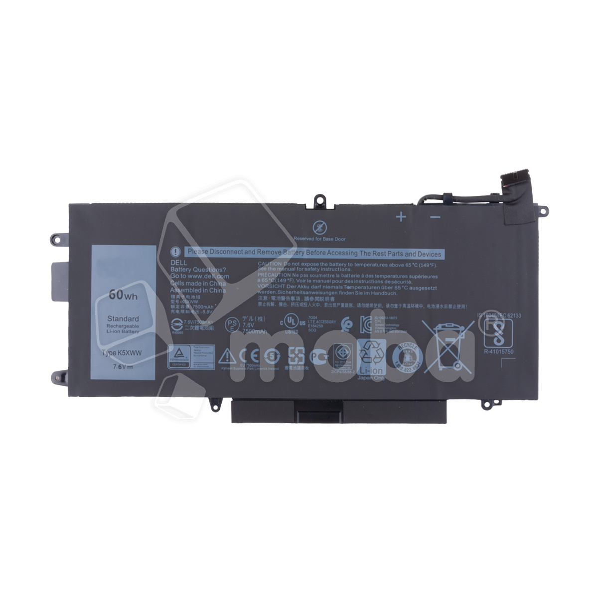 АКБ для ноутбука Dell K5XWW 7500 mAh