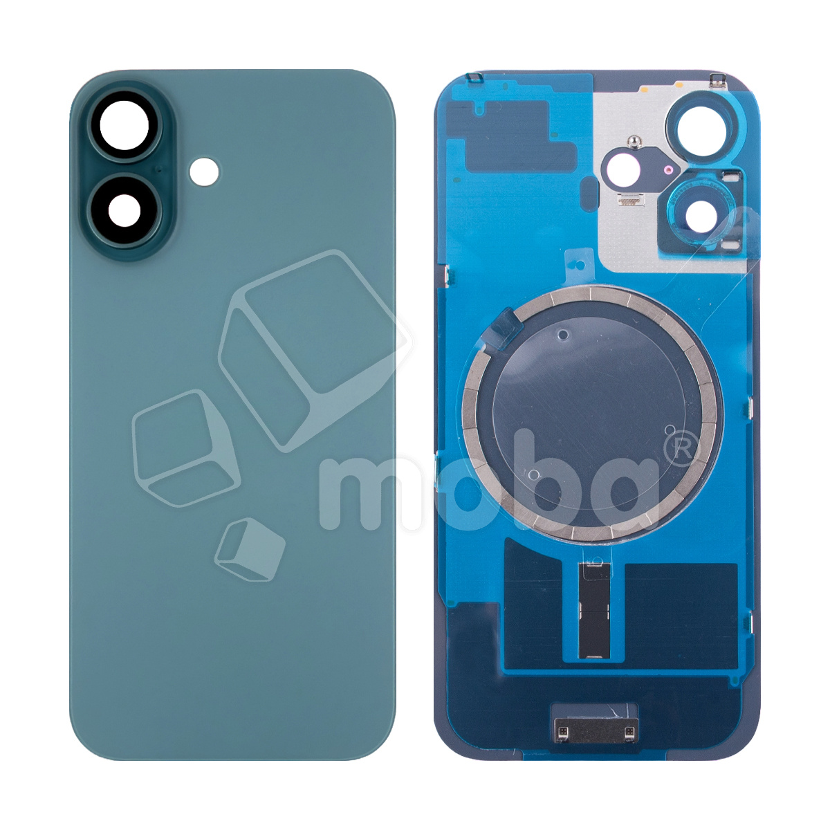 Задняя крышка для iPhone 16 (A3287) в сборе со стеклом камеры Бирюзовый (стекло, монолит, MagSafe, логотип) - Премиум
