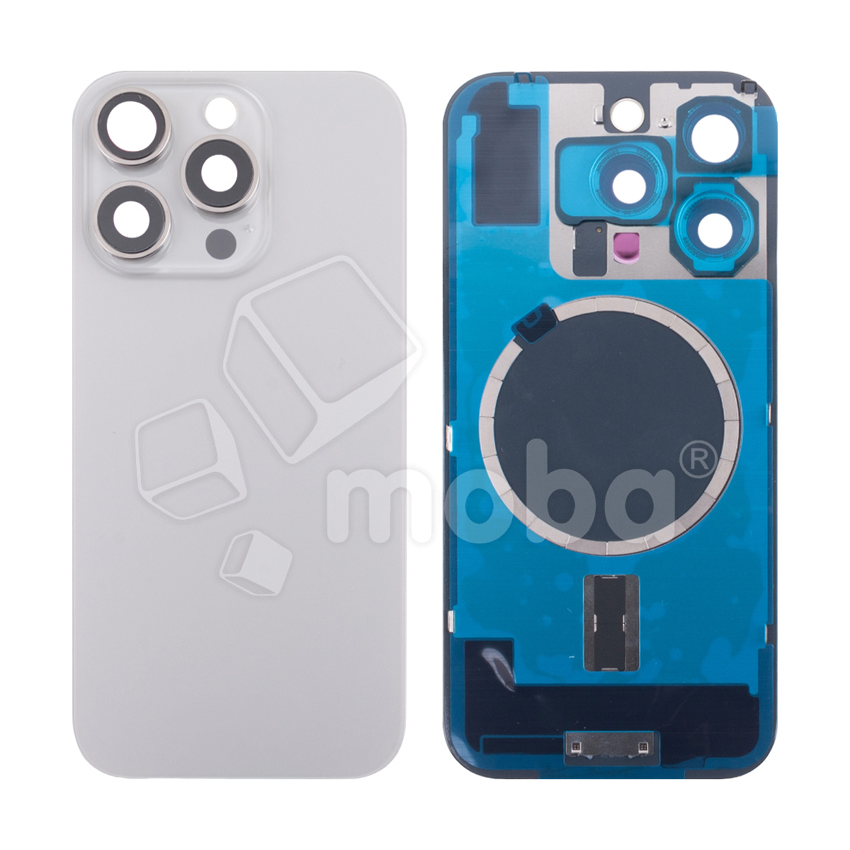 Задняя крышка для iPhone 16 Pro (A3293) в сборе со стеклом камеры Серый (стекло, монолит, MagSafe, логотип) - Премиум