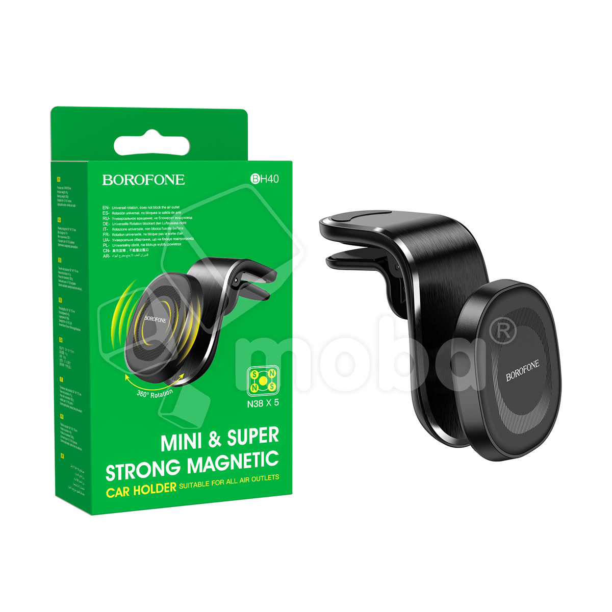 Держатель Borofone BH40 магнитный держатель удобен тем, что в нём можно зафиксировать смартфон одной рукой. Принцип работы магнитного держателя заключается в том, что он состоит из двух частей, одна из которых крепится на держатель — неодимовый магнит, а другая часть фиксируется на мобильный телефон — металлическая пластина.